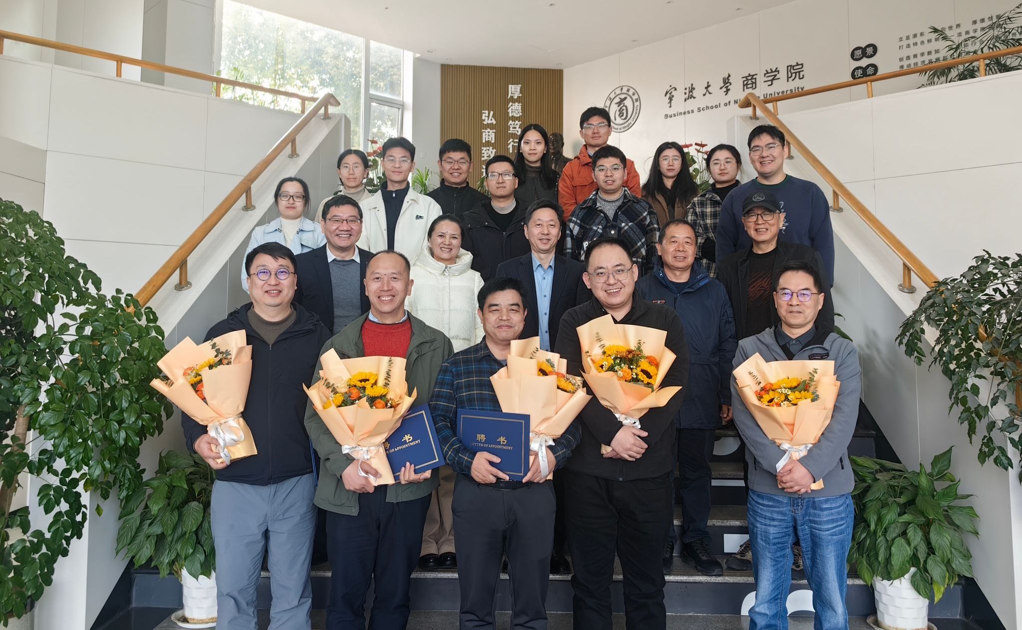 随后,院长周新苗教授为彭新敏、董永虹、靳来群、陈翼然、叶劲松、冷军、张武科等七位导师颁发了结对聘书,不仅是对导师们承担指导重任的认可与肯定,更是一份沉甸甸的责任与期望。青年教师们满怀敬意地向各自的导师献上鲜花,鲜花的芬芳传递着他们对导师的尊敬与感激之情。