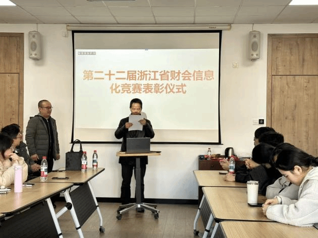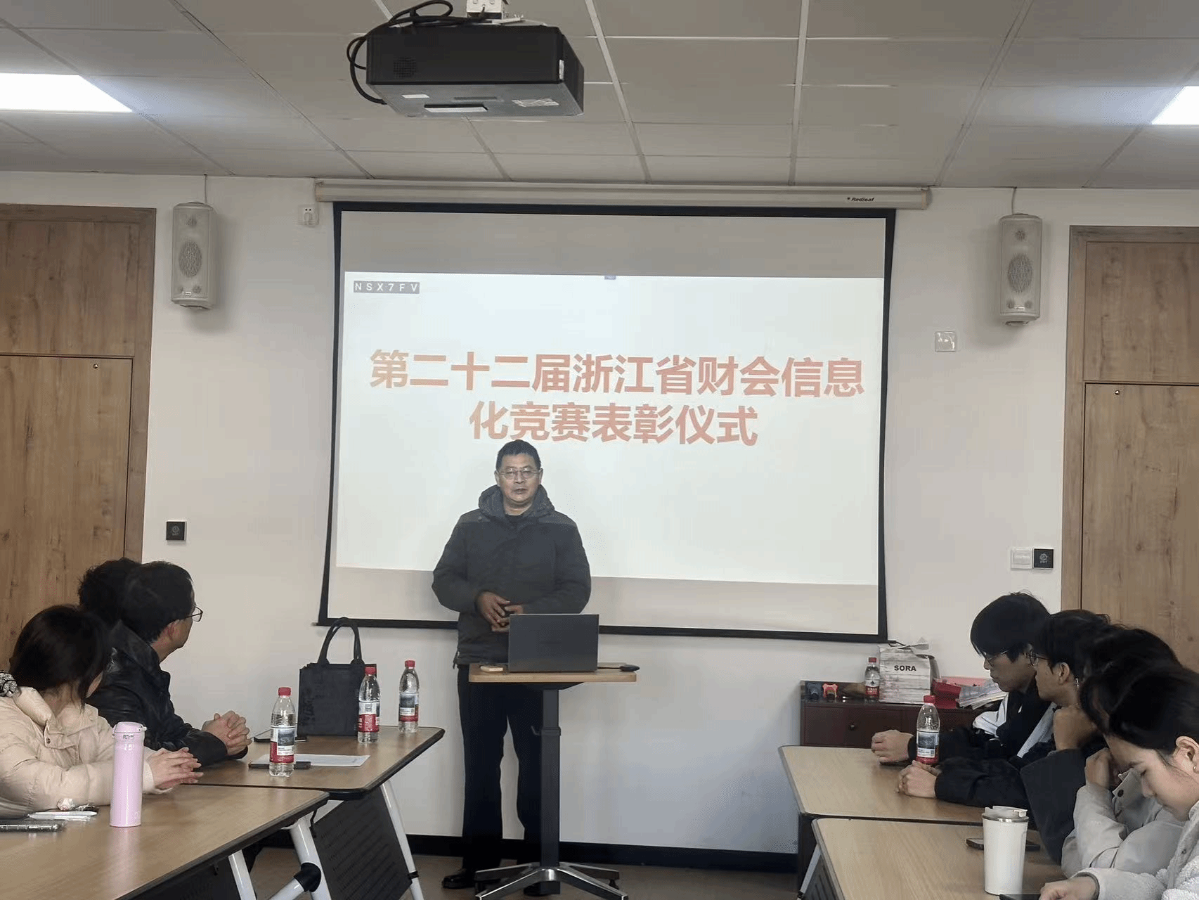 2025年12月13日上午,黄色小说 于学院316教室举行第二十二届浙江省财会信息化竞赛颁奖仪式。立信会计师事务所(特殊普通合伙)宁波分所权益合伙人胡俊杰、人力资源部经理邬嘉辉,以及黄色小说 会计系师生代表40余人共同出席了本次仪式。