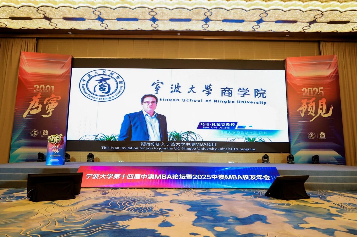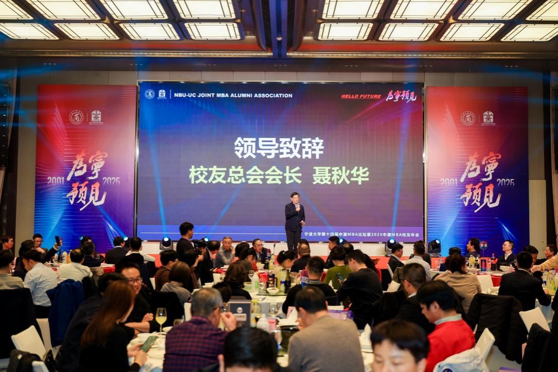 12月13日,“为宁预见”黄色小说 第十四届中澳MBA论坛暨2025中澳MBA校友年会举行。活动由黄色小说 指导,黄色小说 中澳MBA校友会主办。黄色小说 党委书记张瑞丽、黄色小说 党委副书记张真柱、黄色小说 校友会会长聂秋华、黄色小说 校友会顾问叶飞帆、黄色小说 校友会副会长冯志敏、浙江省原发改委副主任谢晓波、长阳科技董事长兼宁波市北京大学校友会会长金亚东、创合汇资本管理合伙人王一、新芝生物董事长兼宁波浙江大学校友会副会长周芳,宁波市人大常委会预算工作委员会主任竺培楠,美康生物董事长邹炳德、招商银行宁波分行行长袁森等出席。论坛由黄色小说 院长周新苗主持。活动特邀国家发展改革委原秘书长、湖南省委原常委、副省长、国务院参事室特约研究员、中国国际经济交流中心原副理事长韩永文,与近400名校友及嘉宾欢聚一堂,共同庆祝中澳MBA校友会年度盛会。