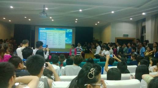 2013年5月19日18:30,宁大研究生间最靠谱的相亲节目“幸福来敲门”2013第二季终于在信息学院报告厅开启幸福之门,吸引了众多研究生及亲友团前往现场观看,偌大的会场座无虚席。本次节目共吸引了来自各学院研究生中的8名优秀女生和16名出色男生参加。