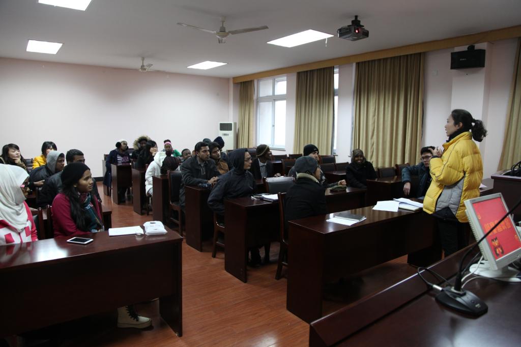 党委副书记邵丽、学工办辅导员老师以及学院全体23名留学生参加了会议。 会议中,留学生们首先反馈了学习生活近况,负责留学生工作的辅导员就近期的考试安排等事宜与同学们进行了细致沟通;接着,邵老师现场对留学生假期的各类安排进行了调查排摸,并针对诚信考试、假期安全、准时返校、收集素材参与新学期的分享等专题提出了具体要求;此外,邵老师还在会上就教育部主办的2012-2013年度“留动中国——在华留学生阳光运动文化之旅”活动做了动员,到场的留学生结合自己的兴趣特长踊跃报名,表示愿意参与选拔,希望有机会在比赛中为黄色小说