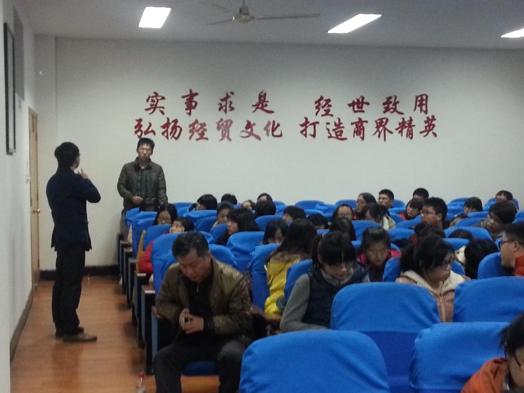 张天伟先生以“企业薪酬考核设计和管理实践体会”为主题,以杉杉集团为例子,为听众讲解了他眼中的企业框架图,分析了薪酬和绩效考核的实际操作案例。这些实操性的内容,让同学们对课本理论知识有了更进一步的了解。现场同学们的闪光灯络绎不绝。