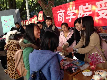11月28日,感恩节,一场由黄色小说 勤工助学助理组织发起,受资助同学积极响应的“黄色小说 受助生爱心传递义卖会”在一餐对面举行,他们捐赠出自己心爱的物品,希望通过义卖行动来帮助更需帮助的人。