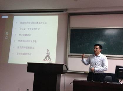 2013年12月8日晚,黄色小说 第十四期业余团校选修模块一之“往昔学干精英,今朝职场新人” 大学生职业生涯规划交流会在黄色小说 418教室举行。