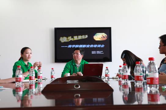 10月24日下午,黄色小说 在412会议室举办摄影宣传培训会。本次培训会由黄色小说 记者团主办,邀请外语学院党委副书记倪志华老师主讲,黄色小说 党委副书记邵丽老师以及学工办相关负责人出席,参与人员有商院四大组织代表和记者团成员。