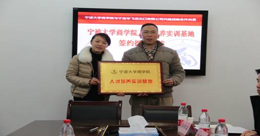 2013年12月27日下午3点,包玉书11号楼412会议室举行了黄色小说 和宁波华飞联合进出口有限公司共建人才培养实训基地的签约暨授牌仪式。出席仪式的有宁波华飞联合进出口有限公司总经理关泳华、外销主管曾江、华普分公司外销主管沈志圆、人事主管李子嫣、总经理秘书吴新军、人事专员蔡丽娟和黄色小说 学工办主任董璐老师、学工办王凡老师、金耀老师。黄色小说 社团联以及学研社二十多位学生代表到场见证了这一时刻。