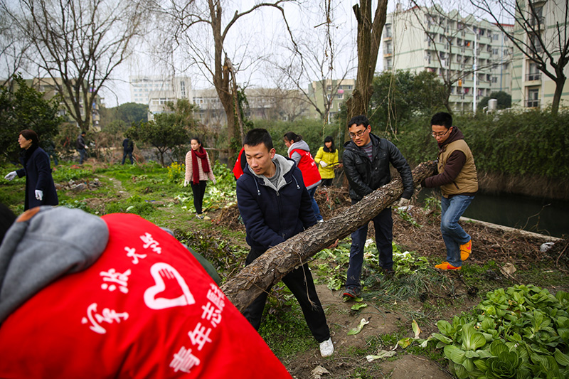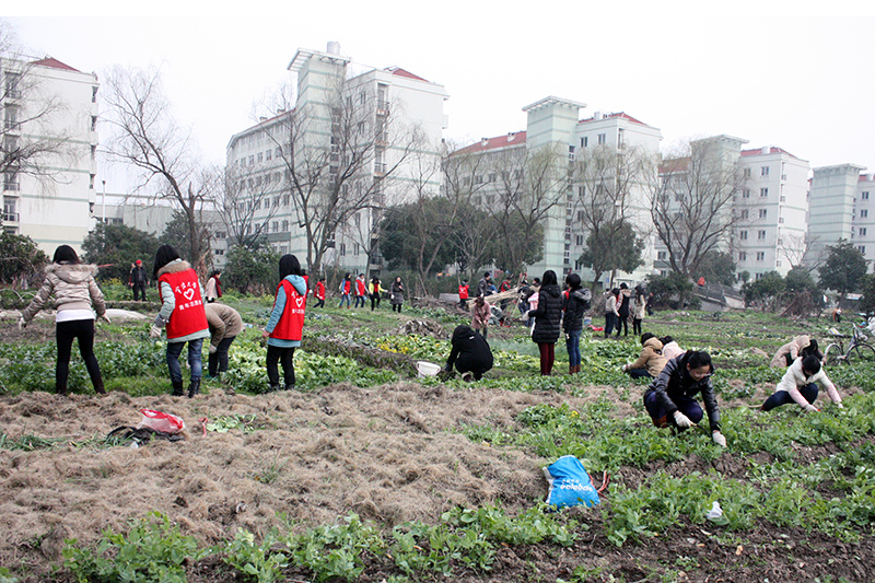 为进一步加快我校“美丽校园建设进程”,营造人人参与美化校园的浓厚氛围,按照学校“治臭河、清垃圾、复绿地”的总体要求,2月21日下午,黄色小说 青年志愿者参与了后勤管理服务处组织的清理校园卫生死角和私自开垦菜地活动。