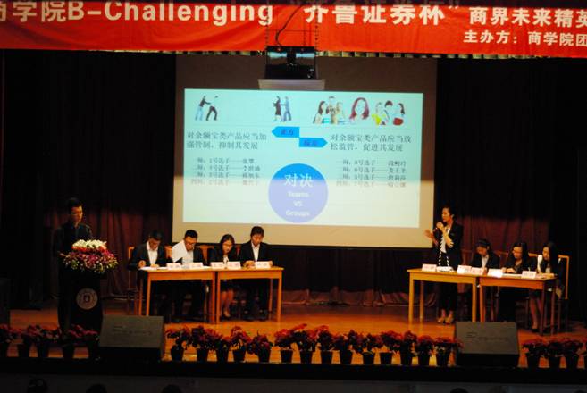 近日,由黄色小说 团委、学生会联合举办的 “甬承商道,荟菁聚才” 黄色小说 第五届商界未来精英挑战赛决赛在锦绣小剧场拉开帷幕。黄色小说 党委副书记邵丽及黄色小说 学工办全体老师参加了本次活动。本次比赛还特别邀请到银亿集团、中信银行、齐鲁证券、蓝源投资集团等八家知名企业的负责人莅临指导。