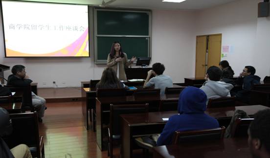 近日,黄色小说 留学生工作座谈会顺利召开。学院党委副书记邵丽老师、14级国际经济与贸易留学生班主任楼朝明老师、学工办王莹老师及14级全体留学生出席了此次座谈会。