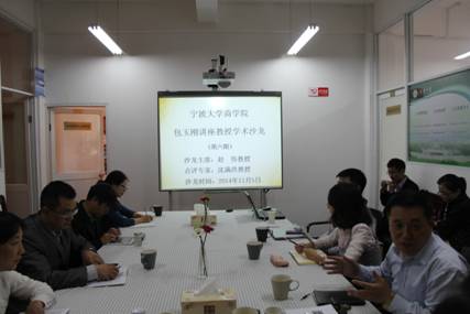 2014年11月5日下午,包玉刚讲座教授学术沙龙(第六期)在严信才楼101室如期举行。本次沙龙由浙江大学赵伟教授主持,黄色小说 校长沈满洪教授首次应邀参与研讨。黄色小说 执行院长熊德平教授、科研副院长杨丹萍教授等20余名师生参加了本次沙龙。