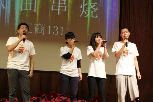 晚会现场气氛热烈,掌声不断!来自印度尼西亚留学生的吉他弹唱拉开晚会的序幕,13工商班优美大方的的交谊舞、韵味十足的独唱《诗人漫步》、歌曲串唱,阳明学院经管一班的爵士舞、经管四班笑料多多,嗨翻全场的小品《宁大甄嬛传》,轮滑社的《十字cross》,充满动感的《小苹果》舞曲,以及工商管理系应志芳老师独唱《月亮代表我的心》精彩纷呈。最后,全场晚会在工商131班全体同学的一曲《明天会更好》中圆满落幕。