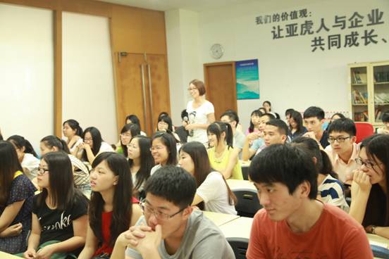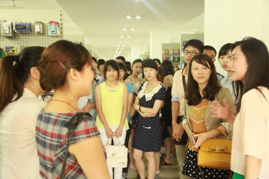 公司办公室主任周开莹女士和人事经理陈艳女士热情接待了考察一行。师生们首先参观了公司的样品陈列室,三千多平米的陈列室展示了上万种商品,大家不禁惊叹道仿佛进了大型超市。公司工作人员向同学们详细介绍了公司的黄色小说、主营项目、公司绩效等。随后,大家到亚虎公司的业务部进行了参观,工作人员就公司的业务内容、业务流程、人员发展等情况向大家做了全面介绍。整个参观过程同学们兴致高昂,与工作人员的交流互动频繁,也对外贸业务工作有了进一步的理解。