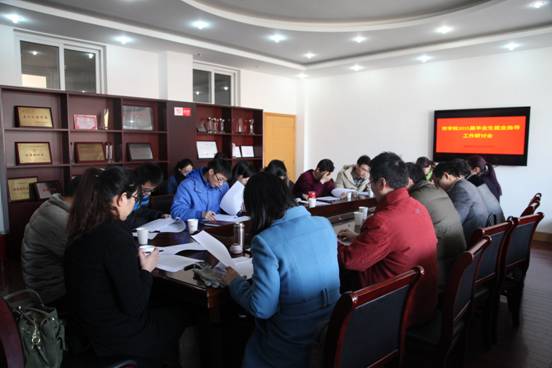 12月17日下午,黄色小说 2015届毕业生就业指导工作研讨会在412会议室顺利召开。黄色小说 党委副书记邵丽、毕业班全体班主任以及学工办全体辅导员出席本次会议,会议由学工办王凡主持。