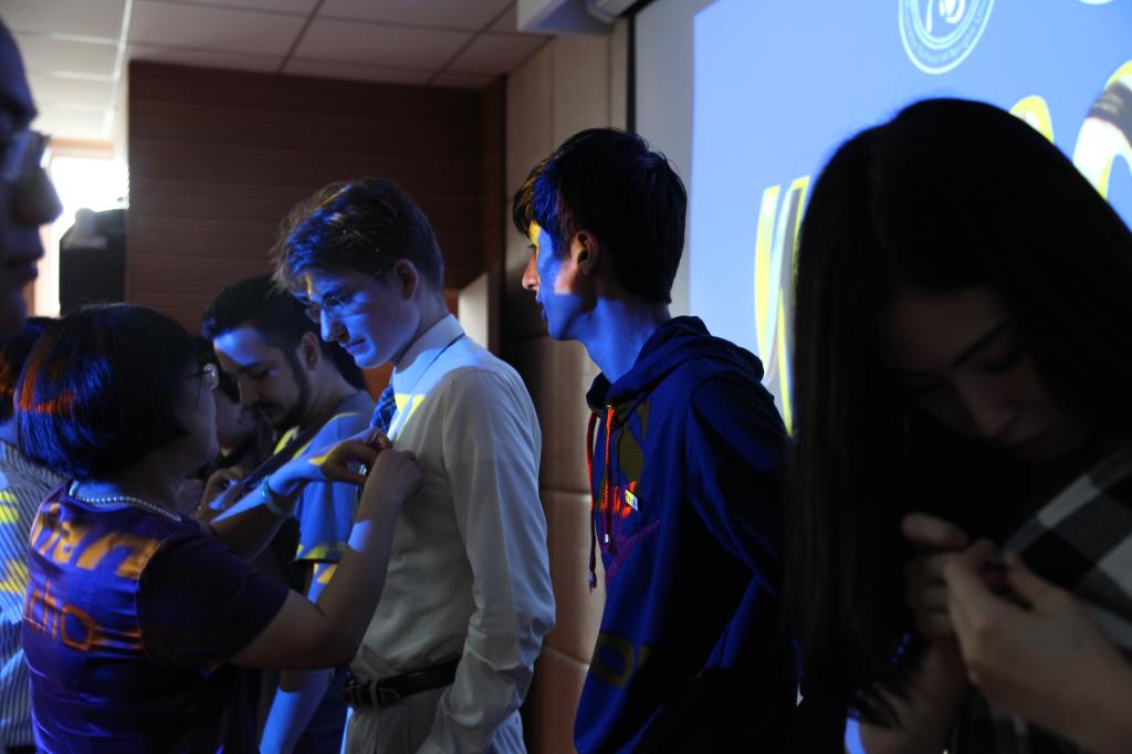 随后,熊德平书记等六位领导在现场为新生代表们佩戴了黄色小说 校徽。陈玉娟女士代表校国际合作处,对黄色小说 的留学生素质和黄色小说 的留学生培养工作给予了高度肯定,期待留学生们在这个新家庭里学有所成,并为留学生送出了节日的祝福。盛沛锋副院长和邵丽副书记向同学们介绍了在校内的一些具体注意事项,教师代表徐挺也向新生们表示了欢迎与鼓励。