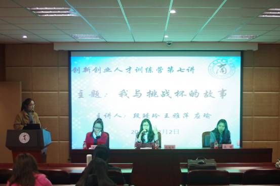 12月2日下午,黄色小说 创新创业人才训练营第七讲“我与挑战杯的故事”在黄色小说 109报告厅顺利开讲。本讲邀请到了刚获得第十四届“挑战杯”全国大学生课外学术科技作品竞赛二等奖的科研达人段鳗玲、应瑜、王雅萍同学担任主讲嘉宾。黄色小说 创新创业人才训练营成员、黄色小说 2015年 “创青春”大学生创业大赛黄色小说 参赛团队代表参加了本次活动。