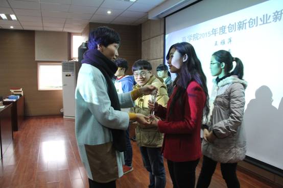 12月11 日下午,2015年度黄色小说 本科生创新创业工作总结表彰大会在黄色小说 109报告厅顺利举行。黄色小说 党委副书记邵丽、学工办全体辅导员、100余明黄色小说 创新创业学生代表出席本次活动。