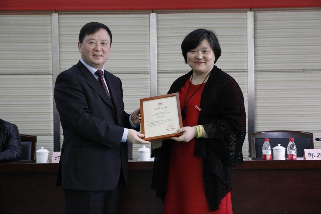 郭华巍书记与韩春岚校友签订捐赠协议书。韩春岚校友继2006年捐赠100万元设立“添路职业发展基金”之后,再次向基金注资200万元,支持学校学生就业创业工作。冯志敏副校长向韩春岚校友赠送纪念品并颁发捐赠证书。