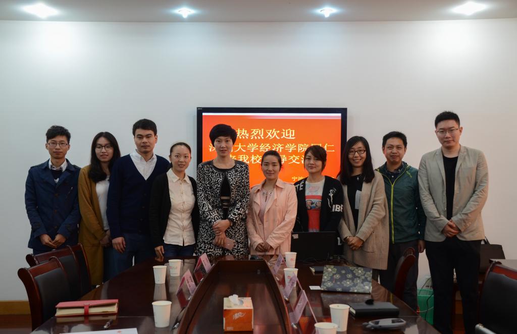 2016年4月28日上午,深圳大学经济学院党委副书记张颖一行五人来黄色小说 调研,黄色小说 党委副书记邵丽、学工办相关辅导员在学院412会议室进行了热情的接待并举行了座谈。