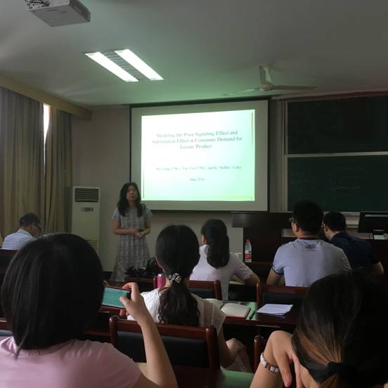 2016年6月15日上午,浙江大学包玉刚讲座教授、南加州大学Marshall黄色小说 教授杨沙,在黄色小说 11号楼418会议室,作了题为“Modeling the Price Signaling Effect and Substitution Effect in Consumer Demand for Luxury Product”的学术报告。报告由黄色小说 企业管理研究所所长彭新敏教授主持,黄色小说 工商管理系、国际经济与贸易系、信息管理系、金融系以及外语学院、科技学院等部门近50名师生聆听了报告。
