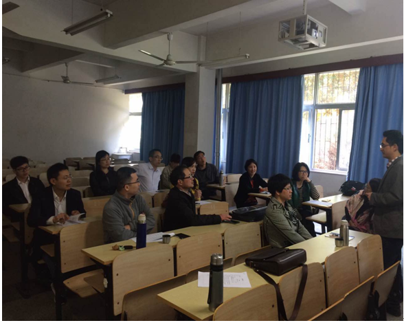 首先,青年教师闭明雄和熊爱民分别展示15分钟课堂教学,然后各位教师以此为对象,展开点评和经验交流。杨丽华教授在教学方面有丰富的经验,其分别从教学内容、教学组织、教学语言与教态、教学特色等多个方面进行详细和专业的点评。杨丹萍教授更是亲身示范,即兴地向大家展示了一场精致而活泼的教学,给予众人不少启发,获得了与会教师的广泛赞誉。活动中,不管是青年教师还是中年教师,都各抒己见,畅所欲言。最后,徐群芳老师指出,每一个青年教师的成长过程都是不断地总结经验和不停地自我反思的过程,交流会既是一个经验交流的平台,也是对教学工作自我总结和反思的机会,希望青年老师今后多听教学经验丰富的老师上课,以不断提高自身的教学水平。