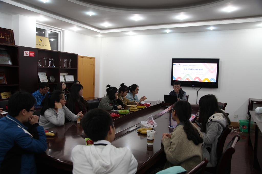 4月6日18:00,来自2012级经济学专业的崔宁和国际经济与贸易专业的游瑾珲在黄色小说 412与13级,14级意向参加考研的同学进行了一场关于考研规划与书籍选择的交流。此次交流是黄色小说 “研途同行”考研指导服务系列活动之一。
