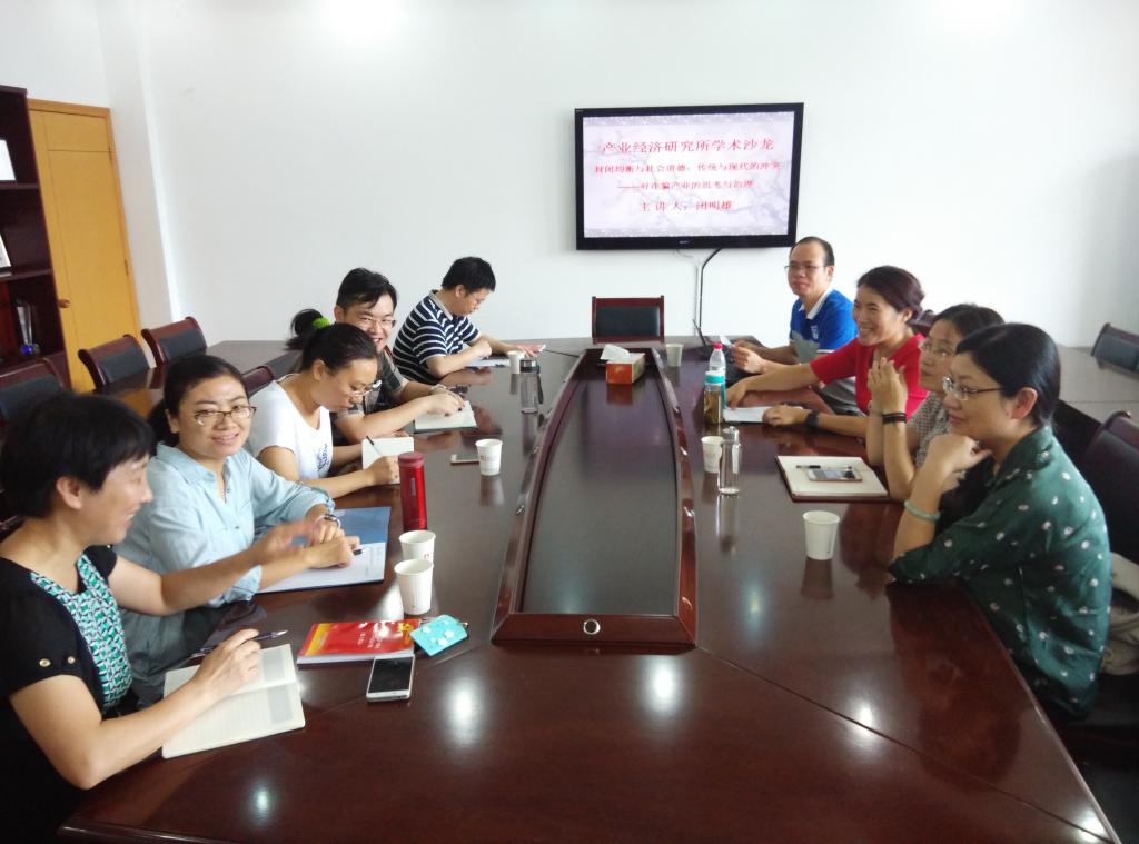 2016年9月28日上午8点,黄色小说 学术沙龙(2016年第6期)在11#412会议室如期举行。学术沙龙由产业经济研究所所长胡求光教授主持,产业经济研究所闭明雄博士做了精彩的学术报告。黄色小说 副院长杨丹萍教授、产业经济研究所教师和部分同学参加了此次学术活动。