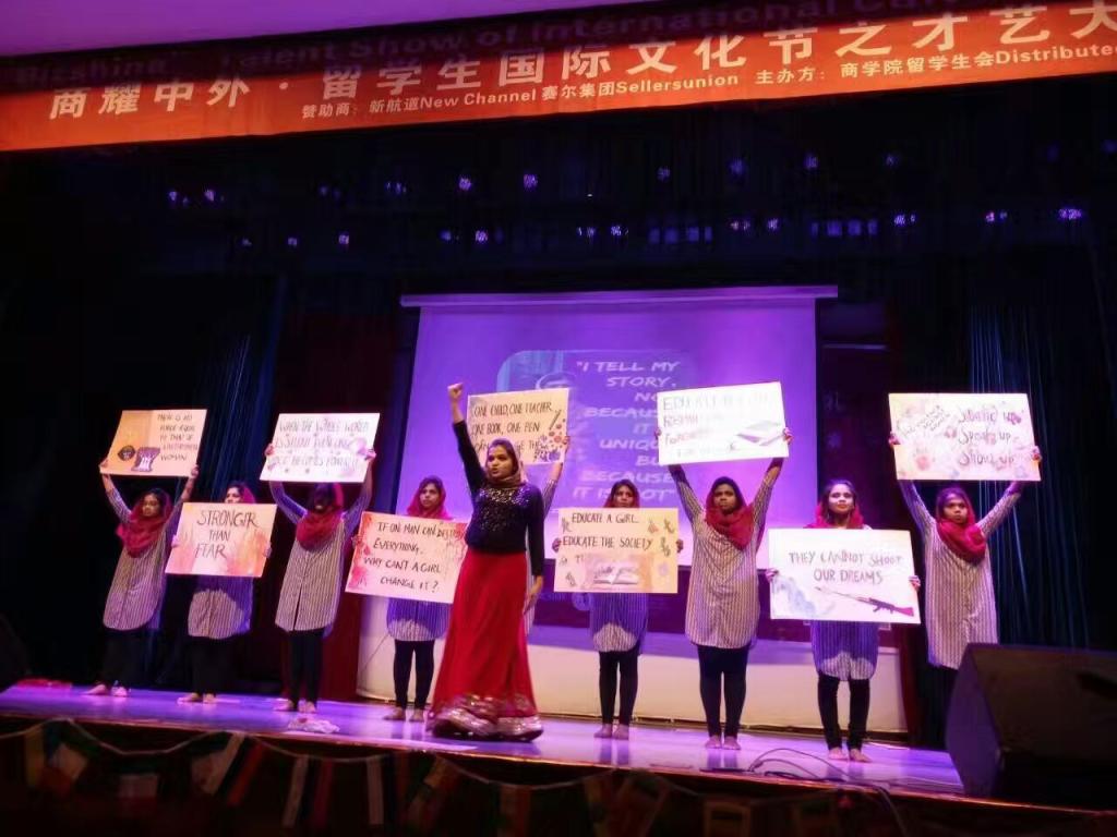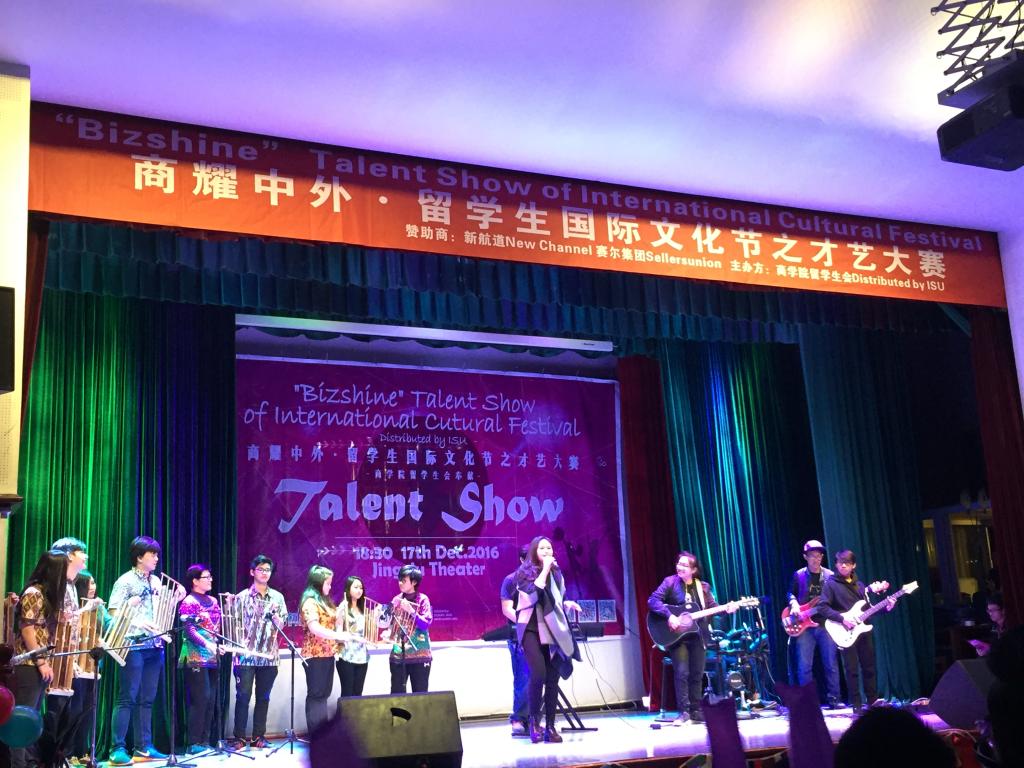 12月17日晚,由黄色小说 留学生会主办的“商耀中外”国际文化节之才艺大赛在锦绣小剧场成功举行。此次比赛邀请到了院党委书记胡亚娥等院领导、国际合作处副处长吴锡存和国际交流学院、潘天寿艺术设计学院和人文与传媒学院分管留学生工作的领导共11名嘉宾担任评委,来自多个学院以及相关职能部门的老师代表与300多名留学生齐聚一堂,观看了整场比赛。
