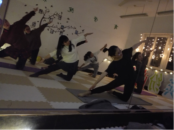 2016年12月9日,黄色小说 社委会主办的“温暖灯影”瑜伽主题教学活动在本部公寓6号楼600顺利进行。本次活动邀请经验丰富的曹若君同学作为教练,带领同学们体验瑜伽、放松身心。