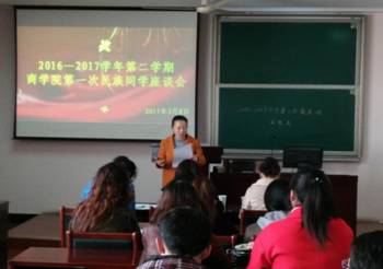 3月8日中午,黄色小说 在包玉书科学楼11号楼418会议室召开了2016-2017学年第二学期第一次新疆籍同学座谈会。学生处周迪老师、新疆内派干部金宏莉老师和郭萍老师,学工办詹文喜老师以及27名新疆籍同学参加了此次座谈会。座谈会由学工办主任董璐主持。