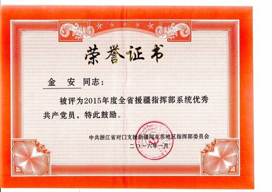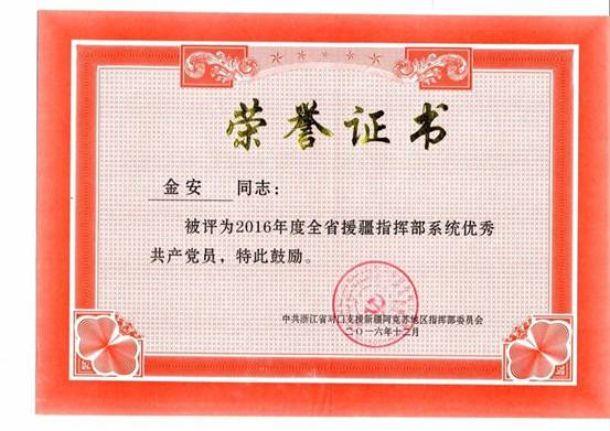 援疆期间,金安老师荣获“优秀援疆人才”、“优秀援疆共产党员”(2015-2016)光荣称号,他的优秀事迹将激励更多的的宁大教师踏上援疆之路,为新疆的高等教学发展做出应有的贡献,也在学院工商团队兴起了一股学习援疆模范的浪潮。