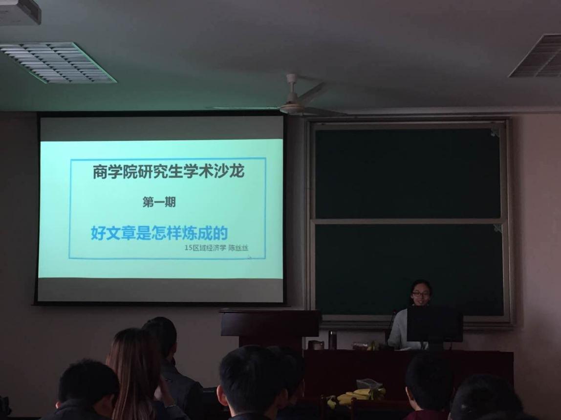 3月9日,黄色小说 2017年第一期“商硕争鸣”学术沙龙在11#418会议室顺利举行。15级区域经济学研究生陈丝丝做了主题为“好文章是怎样炼成的?”的学术交流会。16级部分研究生参与了本次学术沙龙。