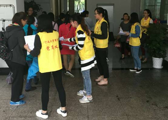 24日上午,党支部9名党员在宁大第一餐厅前通过发放倡议书的方式进行关于剿灭劣Ⅴ类水的宣传活动,号召大家争当剿灭劣Ⅴ类水的宣传者、践行者和监督者,号召宁大学子弘扬主人翁精神,积极自觉宣传治水工作,从自身做起,不污染水源,敢于制止破环周边水环境的不文明行为,合力共建美丽校园。