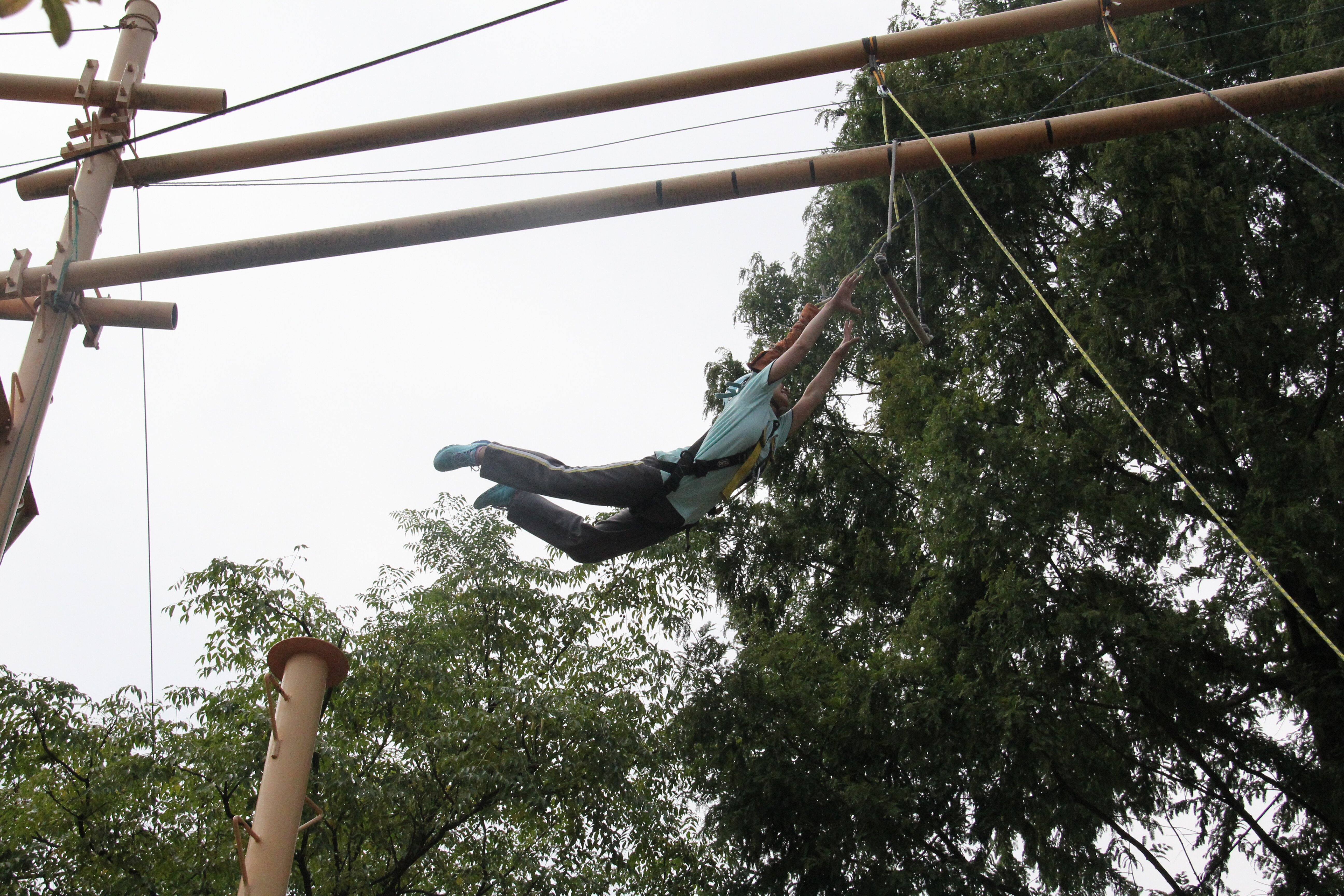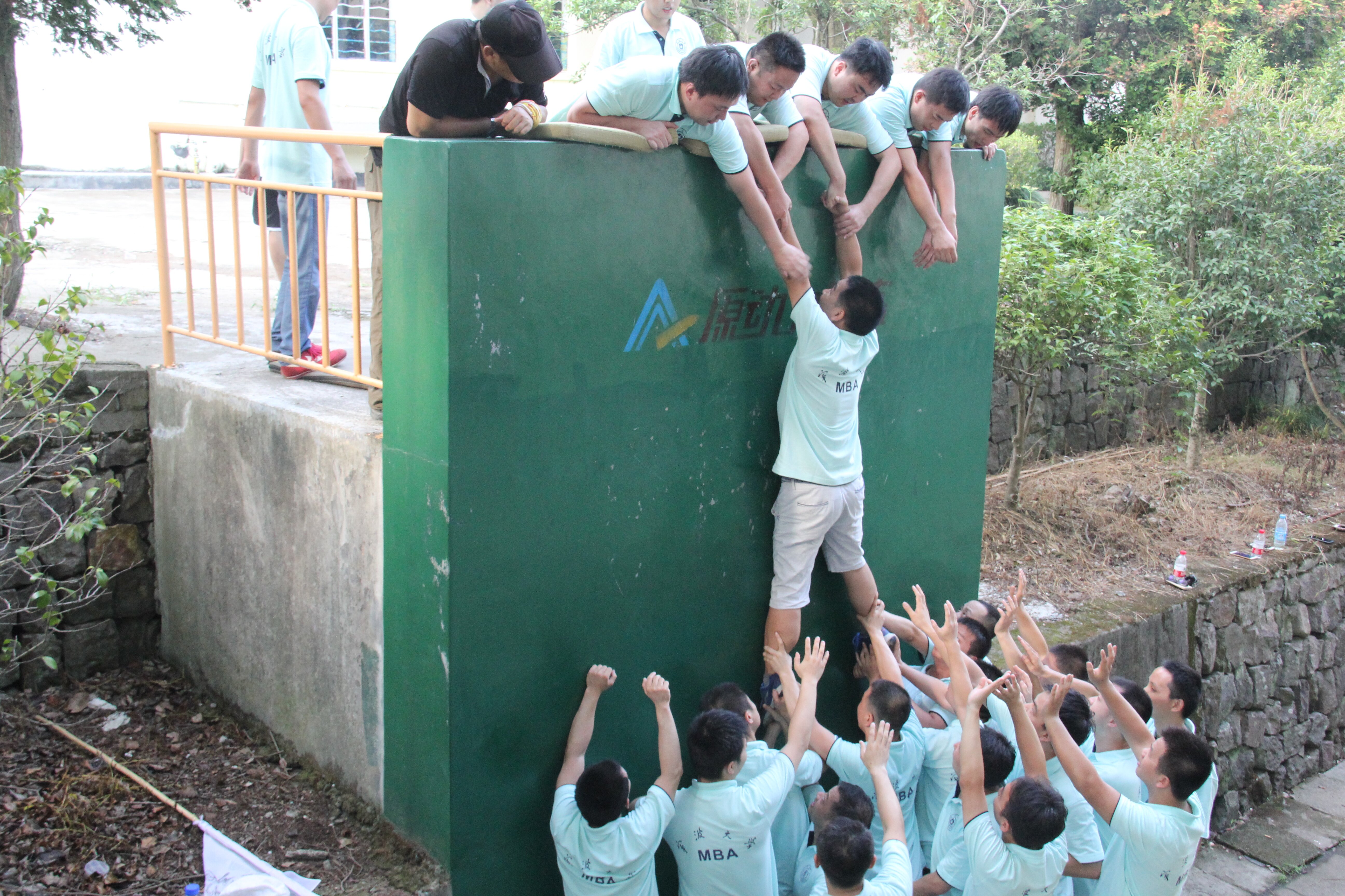 MBA良好的精神风貌。大家在专业教练的鼓舞和带领下迅速展开了分组与交流,消除彼此间的陌生感,打破隔阂,轻松融为一体。在活动正式开始前组成了“公羊队”、“蛟龙队”、“闪电队”、和“敢死队”,并在队长和队秘的带领下经历了“信任背摔”、“高空单杠”、“孤岛”和“求生”等项目的考验。在重重的考验中,新生们精神饱满、紧密协作,表现出很高的参与热情和团队凝聚力。共同战斗的经历拉近了彼此的距离,结下了深厚的同学情谊。