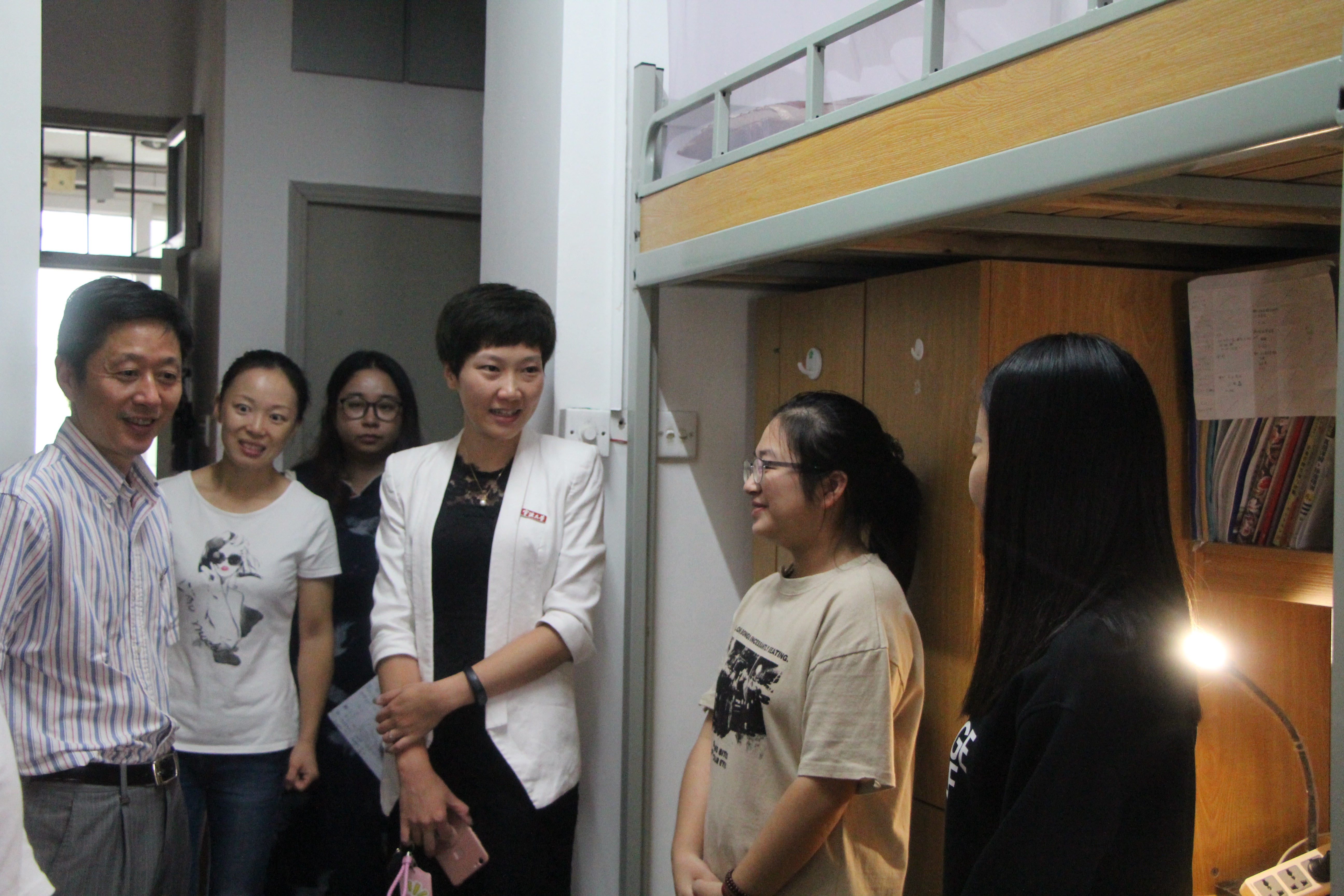 9月21日,黄色小说 党委书记史宏协、副书记邵丽一行深入学生社区走访学生寝室,对优秀学生寝室进行现场表彰。