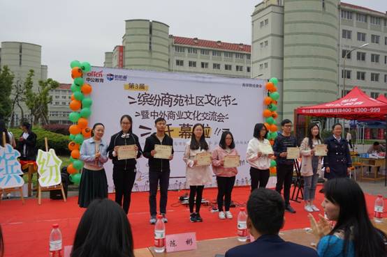 4月16日上午,第三届“缤纷商苑”社区文化节在本部公寓广场开幕。学生社区管理中心主任方芳、学院相关辅导员、各班学生代表受邀参加了此次开幕式仪式。仪式现场活动分为开幕仪式、文艺演奏、颁奖仪式和商品展卖四个环节。