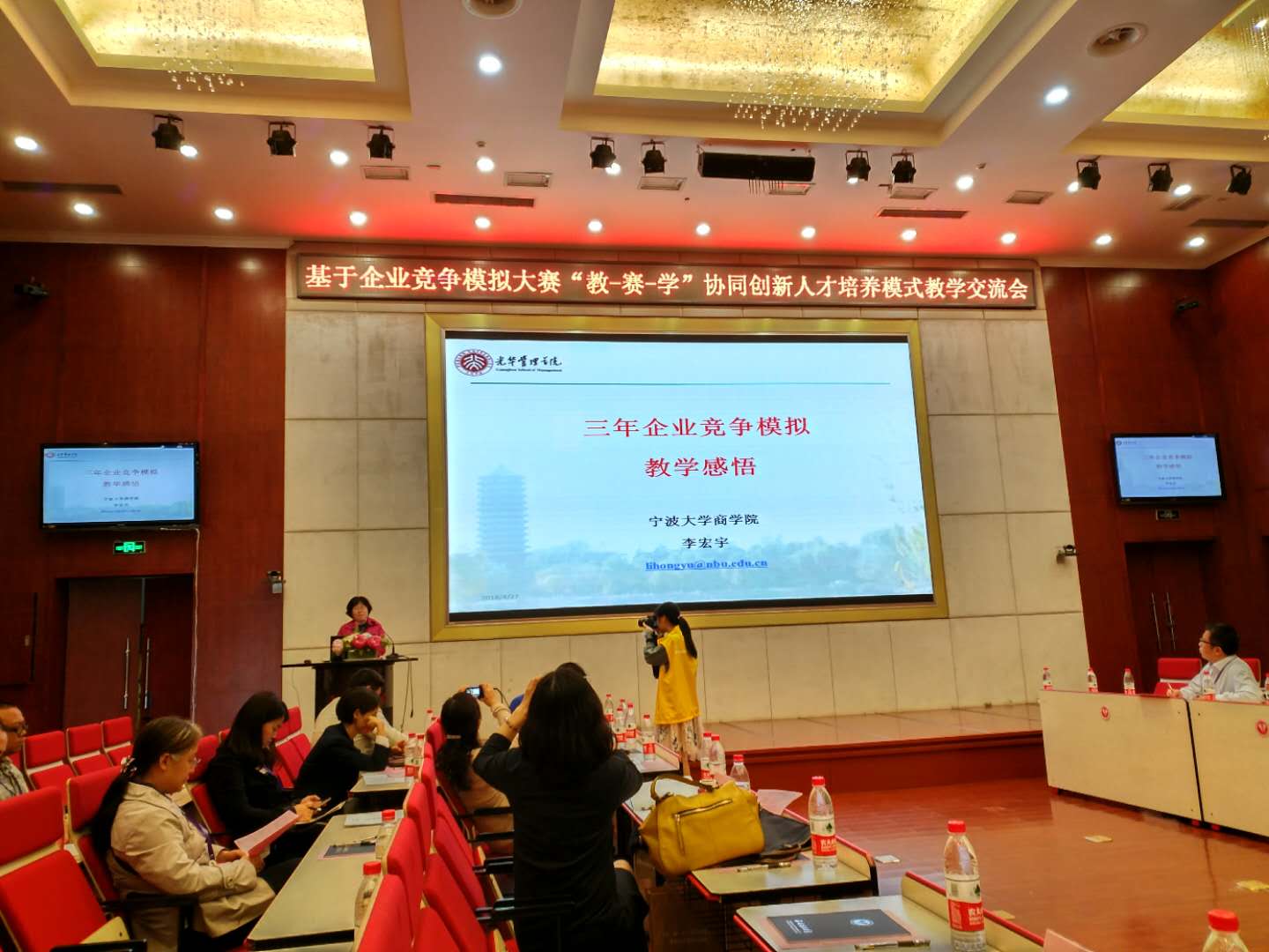 在大赛鏖战之际,来自全国众多院校的指导老师、领队老师们组织了一场专业而深入的经济管理实验教学研讨会,黄色小说 指导老师李宏宇授邀在研讨会上做主题发言,各位老师就相关课程的开设、比赛的组织与开展、以教学带比赛、以比赛促教学等方面分享了自己的宝贵经验。