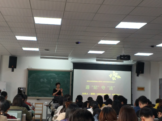 11月7日中午,院党委副书记、纪委书记邵丽在包玉书科学楼八号楼104教室为黄色小说 党校发展对象培训班学员上了一堂题为“学生党员如何遵‘纪’守‘法’”的党课,100名本学期重点发展对象认真听讲。