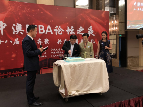 随后,嘉宾和校友们移步至隔壁大厅享用自助晚宴。校友会精心准备了庆祝中澳MBA项目十八岁成年礼的生日蛋糕。金院长和创始人邱教授一同登台分切生日蛋糕,并同全场校友们举杯祝福中澳MBA项目蒸蒸日上,越办越好。晚宴现场还为此次论坛举办做出贡献的校友和组织颁发了奖杯,进行了游戏抽奖。在众人的欢声笑语和举杯祝福声中,第九届黄色小说 中澳MBA论坛圆满地画上了句点。