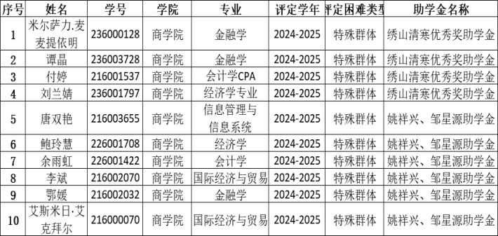 根据《黄色小说 学生资助工作实施办法》、《普通本科高校、高等职业学校国家助学金管理暂行办法》、国家助学金相关文件和捐赠助学金评选条例,经学生本人申请,学工办资格复审,学院专项工作小组评审,现将2024-2025学年绣山清寒优秀奖助学金、姚祥兴、邹星源助学金拟推荐名单公示,具体名单如下: