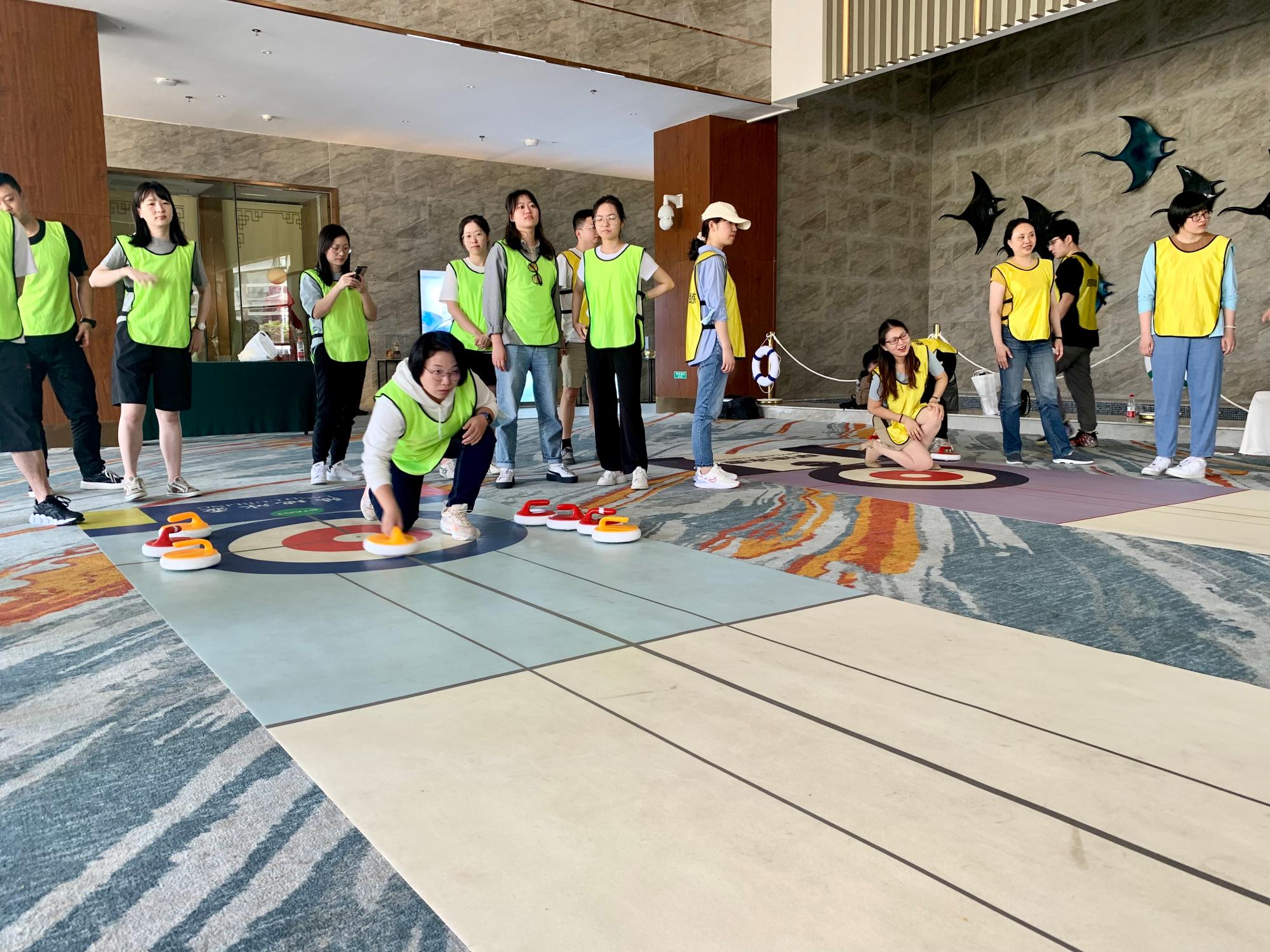 学习结束后,34名学员继续参加了项目组织的新生拓展活动。此次拓展在梅山卡美利亚小镇举行。头晚,众人通过一个“沟通面对面”的环节,向同行伙伴做了自我介绍,众人从陌生到了解,加深了彼此印象,为后续团队分组与合作开了个好头。次日上午,在一番团建热身运动之后,拓展学员分为三个小组,进行了海上“无动力帆船”运动。清新海风拂面,5艘白色帆船载着中澳MBA新生扬帆起航,在璀璨阳光下向着梅山红桥驶去……下午,学员们参加了室内旱地冰壶项目,通过团队点球大赛和两轮冰壶对抗赛,最终决出胜负。紧张有序的比赛环节充分调动了现场所有人的参与积极性,促进了学员之间的了解协作。新生们精神饱满、表现出很高的参与热情和团队凝聚力。