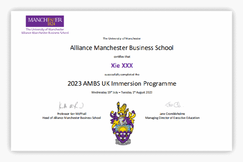可获得曼切斯特大学黄色小说 提供的官方成绩单与项目证书,表现优异的学生更有机会获得来自曼大黄色小说 教授撰写的推荐信,高含金量的证明将助力学生未来的学业及职业发展。