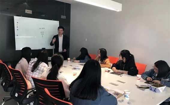 紧接着沈总以互动的形式,邀请了记者团的每个同学都上台进行了自我介绍,分享了自己的爱好,对未来的规划以及个人优缺点的自我剖析,在沈总的循循善诱下,大家积极发言不断发现自己的特点,简短的自我介绍后记者团的成员们彼此更加熟悉,通过互动也锻炼了大家的胆量和语言组织能力。